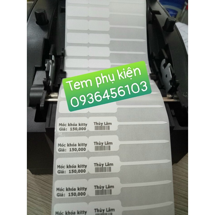 Giấy in tem phụ kiện trang sức: Tem nhiệt dùng cho các máy in mã vạch nhiệt, khổ ngang 2cm, cao 1cm/1 tem, râu 3,5cm. Cả khổ khoảng 7,5cm