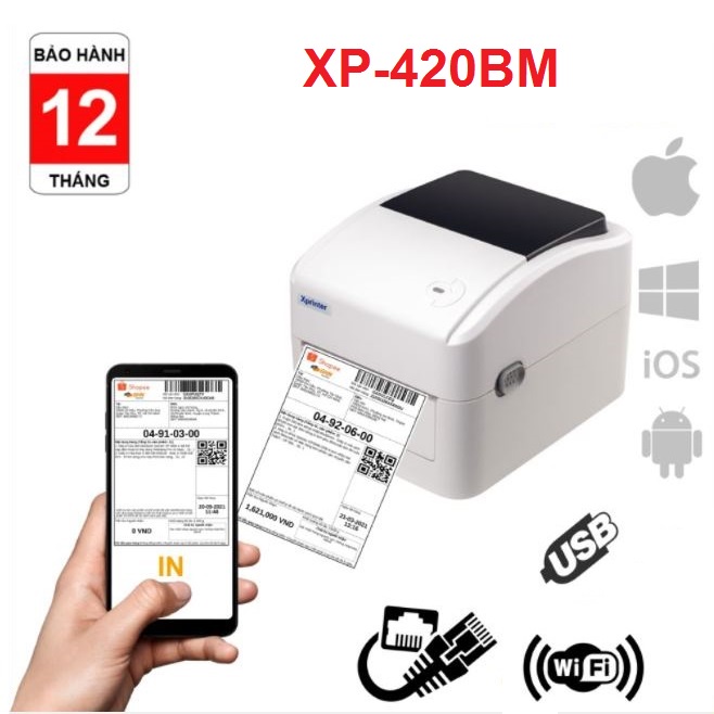 🔔THÔNG TIN QUAN TRỌNG🔔Máy in XP420BM hỗ trợ cổng LAN nên có thể in được đơn hàng từ sàn TMĐT và web vận chuyển trên điện thoại Iphone và Android với giấy A6.