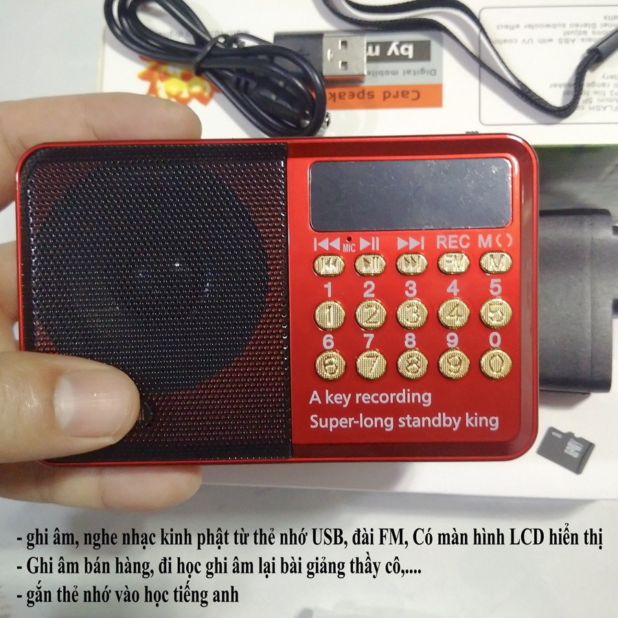 Mô tả sản phẩm Máy ghi âm phát trực tiếp, nghe nhạc kinh phật từ thẻ nhớ USB, Đài FM, kèm thẻ nhớ micro sd 8g cáp sạc đầy đủ K516Máy ghi âm phát trực tiếp, nghe nhạc kinh phật từ thẻ nhớ USB, Đài FM, kèm thẻ nhớ micro sd 8g cáp sạc đầy đủ