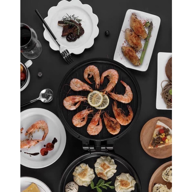 💧Khi ngửa máy ra làm 2 mặt ta có thể sử dụng thành bếp nướng điện dùng tối đa 5 người.