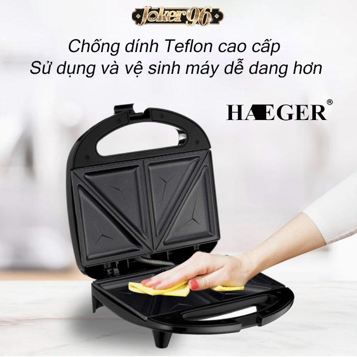 Máy Kẹp Nướng Bánh Mì Haeger, Ép Bánh Sandwich, Làm Đồ Ăn Sáng, Nướng Thịt 2 Mặt Đa Năng