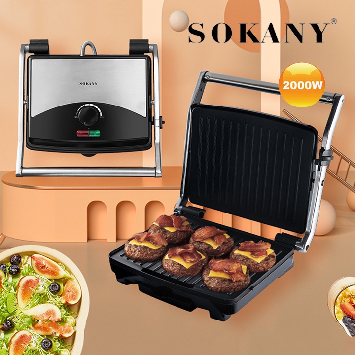 Thiết Bị Điện Gia Dụng > Đồ gia dụng nhà bếp > Máy nướng bánh || Máy kẹp nướng bánh mì, Máy ép bánh mỳ xúc xích có chỉnh nhiệt 2000W SOKANY [BH 12 Tháng]Còn hàng