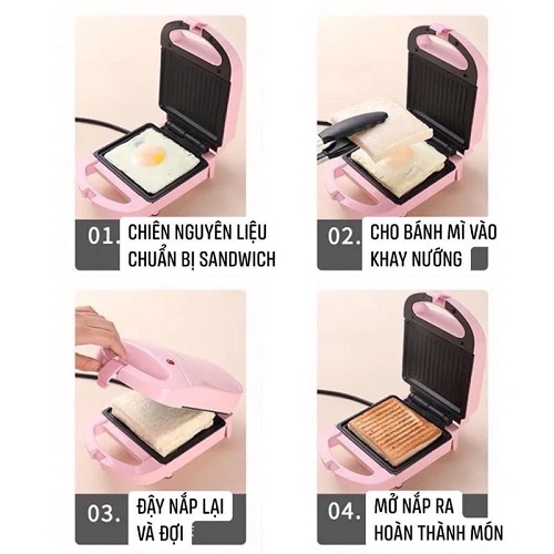 Máy kẹp nướng bánh mì mini - Máy nướng bánh sandwich chỉ với 5 phút cho bữa ăn sáng bảo hành 12 tháng█ Chức năng 1: Nướng bánh sandwich (bánh mỳ lát, bánh mỳ gối)