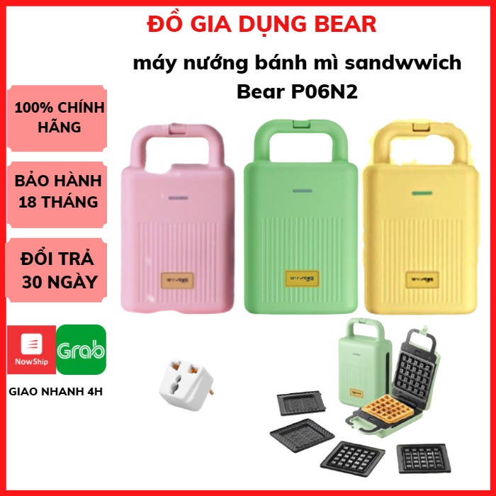 Máy Kẹp Nướng Bánh Mì Mỳ Sandwich Bear P06N2, làm bánh Waffle -Bánh Quế - Hotdog -Làm Bữa Sáng Cho Gia ĐìnhanfhH 12 th