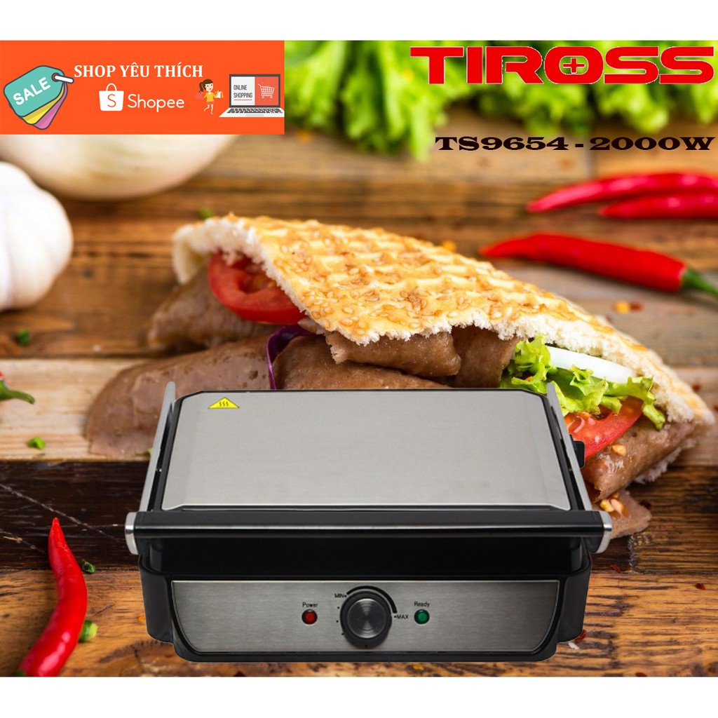 🔵 Máy kẹp nướng bánh TIROSS TS-9654, một sản phẩm mới nhất của thương hiệu TIROSS, mang lại cho người dùng thêm nhiều lựa chọn, một sản phẩm với thiết kế đẹp mắt, gọn gàng và công suất lên đến 2000W, rất nhanh trong việc nướng đồ ăn.▶ Máy kẹp nướng bánh thực phẩm TIROSS TS-9654, với thiết kế đẹp mắt, chất lượng hoàn hảo. Với dung lượng lớn có thể nướng phẳng 180 độ (hoặc gập lại thành 90 độ), dễ dàng làm món bánh sandwich, thịt nướng, thịt quay, nướng rau củ …v…v….