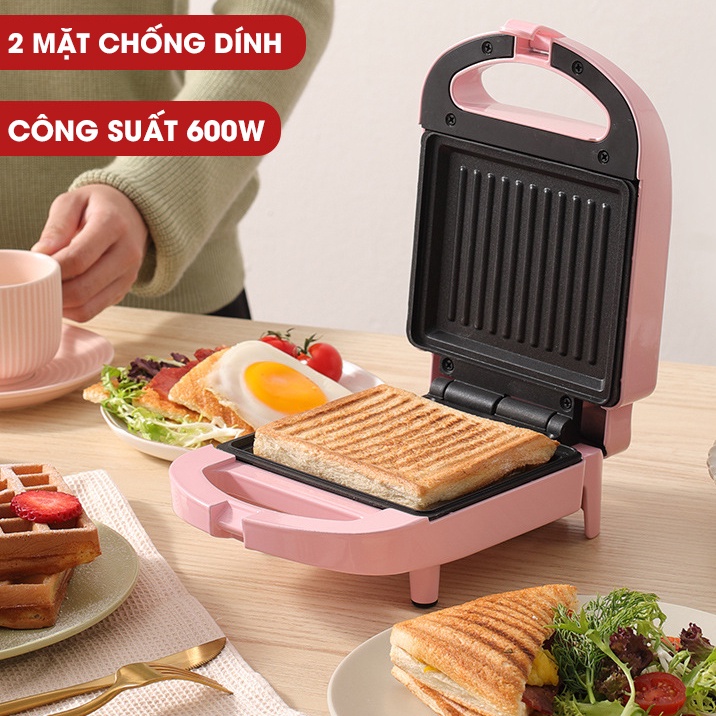 - Cấu tạo: Mâm nhiệt 2 mặt chống dính giúp bánh chín đều 2 mặt, tay cầm cách nhiệt
