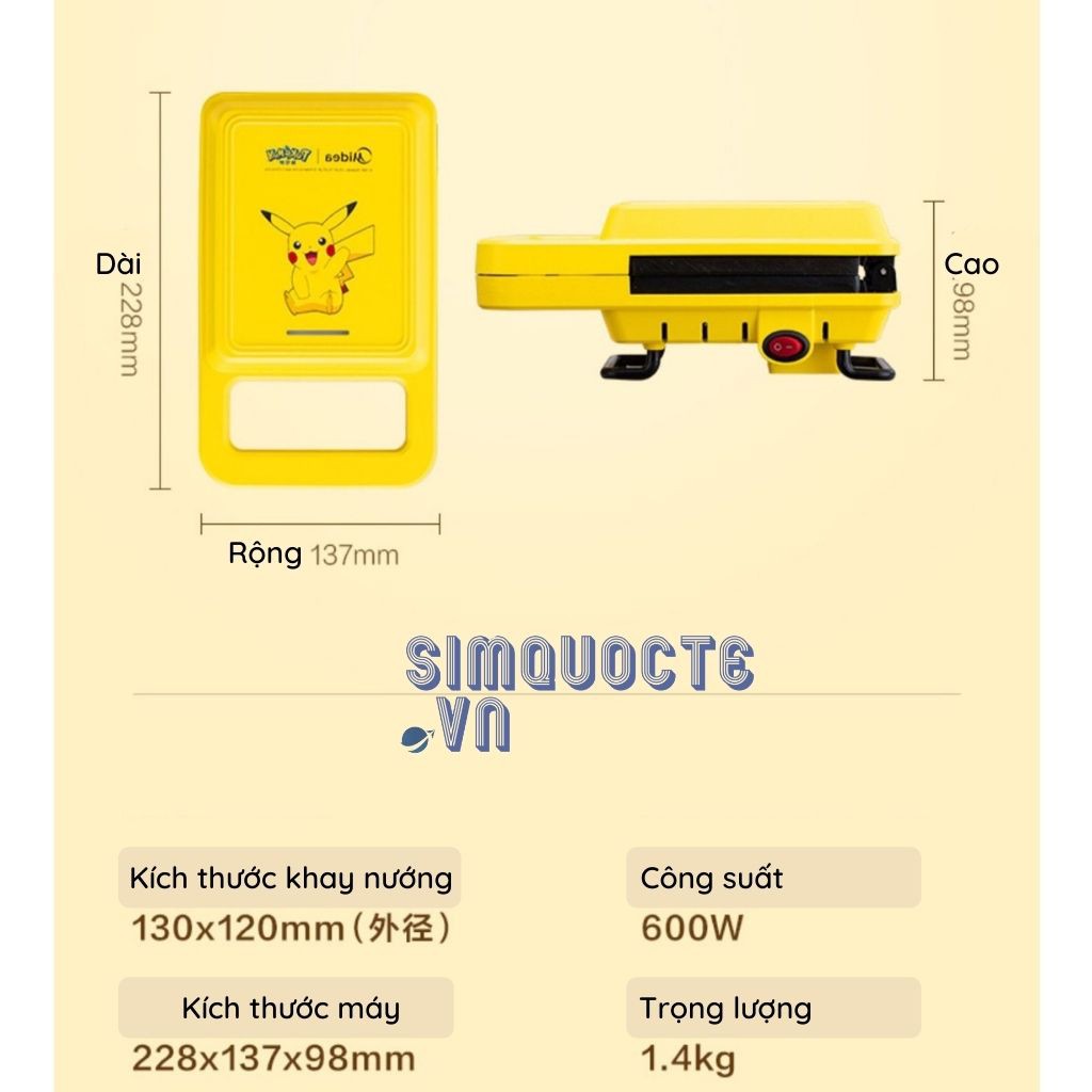 🔅🔅 Máy kẹp nướng bánh mì 4 trong 1 MIDEA kèm khuôn bánh chống dính phủ đá - Hàng chính hãng 🔅 🔅✅Chuẩn hàng Media, phiên bản Pikachu giành cho những fan của Pokemon đáng yêu đây.
