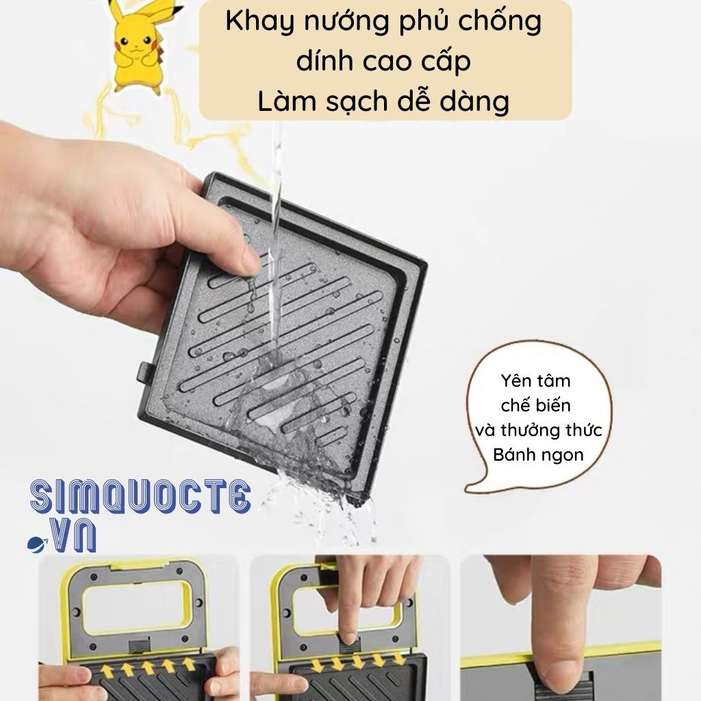 ✅Kèm khay nướng bánh Waffle chính hãng cho máy kẹp nướng bánh Pikachu