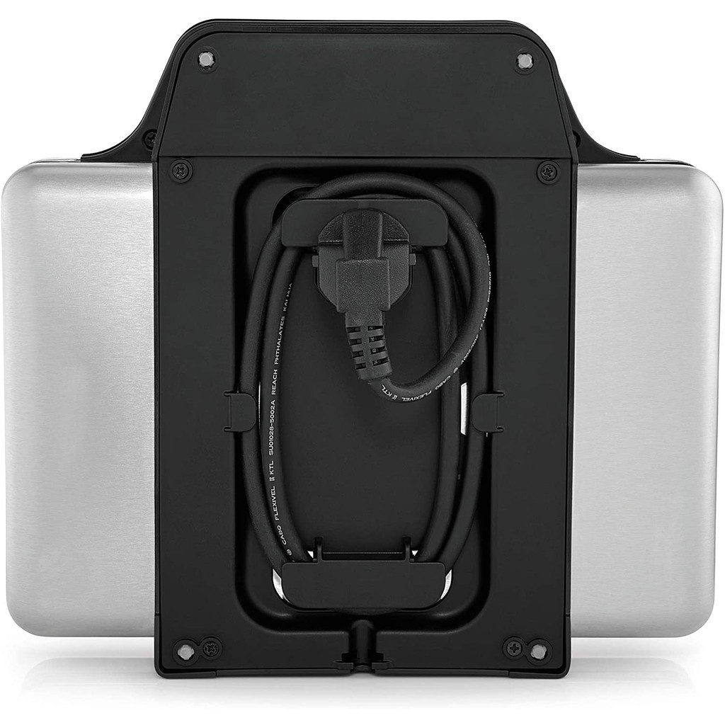 Hoạt động dễ dàng nhờ nút bật / tắt. Khóa tay cầm biến đổi với hai cấp độ điều chỉnh chiều cao thích ứng với độ dày của bánh sandwich