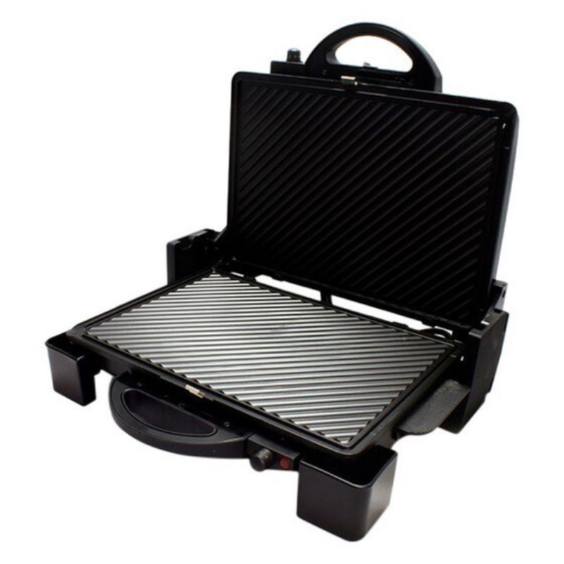 Khi mở ra 180 độ bạn có thể sử dụng như 1 chiếc vỉ nướng điện thông thường với 2 bên khay nướng với 2 nút điều chỉnh nhiệt độ khác nhau.Bạn có thể sử dụng như 1 chiếc máy nướng bánh Sandwich, hoặc nướng cá thịt.