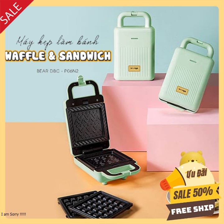 Máy kẹp nướng bánh mỳ sandwich - Bánh Waffle 2 IN 1 chính hãng Bear DBC-P06N2