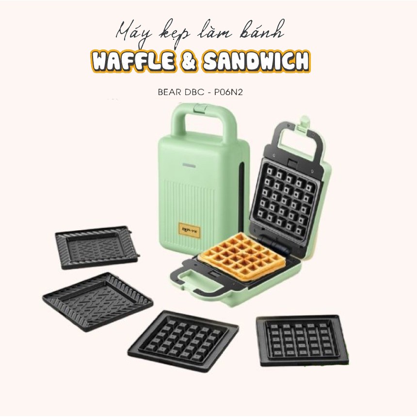 Máy kẹp nướng bánh mỳ sandwich - Bánh Waffle 2 IN 1 chính hãng Bear DBC-P06N2 cao cấp