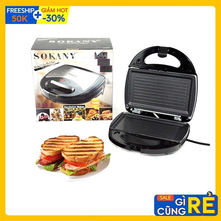 Thiết Bị Điện Gia Dụng > Đồ gia dụng nhà bếp > Máy nướng bánh || Máy kẹp nướng bánh mỳ Sandwich 3 TRONG 1 SOKANYCòn hàng