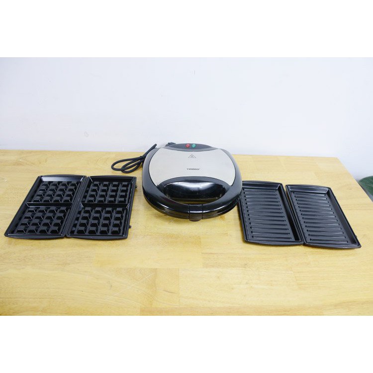 ✭ Máy nướng bánh 3 trong 1 Tiross TS-513 có 3 chức năng: nướng bánh Sandwich, bánh mỳ kẹp, bánh Waffle.Tiross TS-513 giúp bạn dễ dàng nướng bánh sandwich, bánh mỳ kẹp và bánh Waffle, nướng thực phẩm cho cả gia đình. Máy nướng bánh Tiross kèm 3 khuôn: khay nướng, khay Sandwich, khay nướng bánh giúp làm bánh chuyên nghiệp và đẹp mắt hơn. Khuôn bánh có tráng lớp chống dính giúp món ăn không bị cháy khi nướng và dễ vệ sinh hơn.