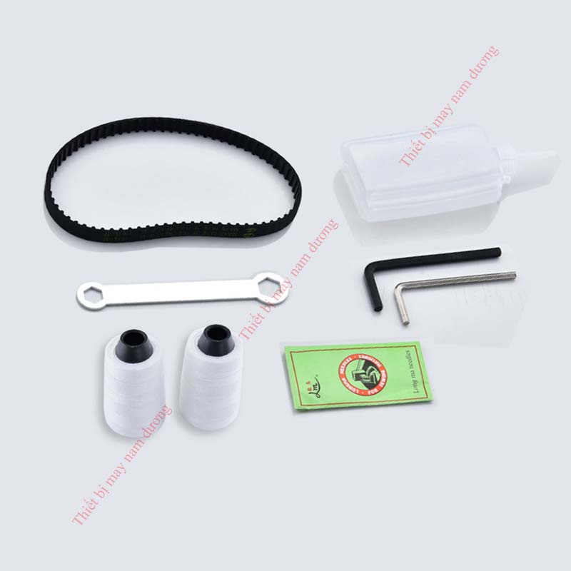 - Phụ kiện đi kèm của máy: Dây nguồn, sách hướng dẫn sử dụng, 1 dây curoa, kim máy, 1 chìa khóa mở kim, 1 bộ dao cắt chỉ