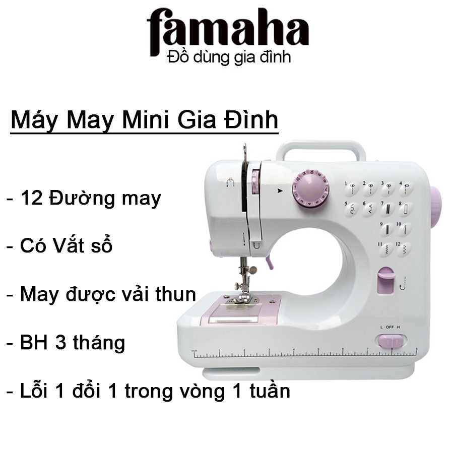 Máy Khâu Mini Gia Đình 12 Đường May, Có Vắt Sổ Kèm Chân Vịt FAMAHA