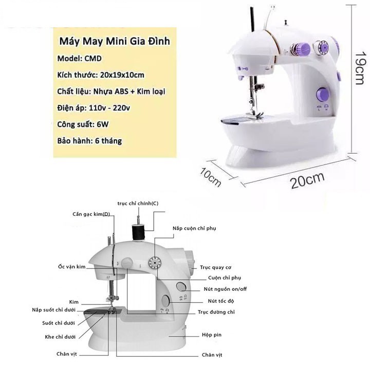 Máy khâu mini gia đình tiện dụng - Máy may CMD hỗ trợ may vá Bảo Hành 6 tháng - Máy may mini gia đình 2 tốc độ may