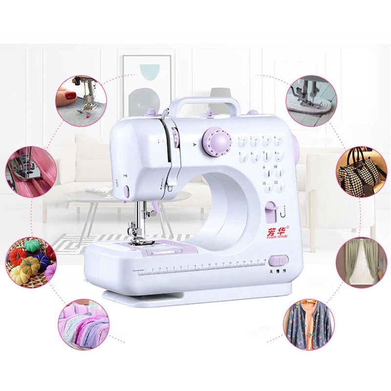Máy khâu mini, máy may gia đình thông minh cao cấp FHSM 505A -Có Vắt Sổ, May Được Vải Thun Có Chân Vịt
