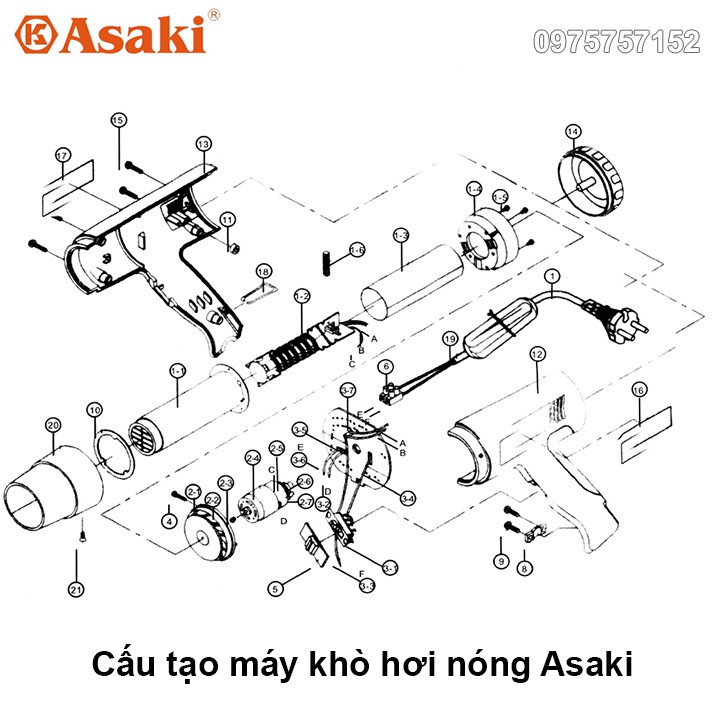 Giới thiệu Máy khò hơi nóng Asaki 1600W AK-9012 (Công ty) Bảo hành 3 tháng