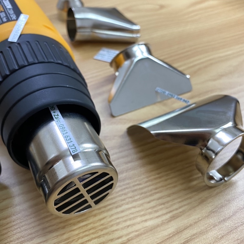 Sản phẩm có 2 tùy chỉnh nhiệt độ thổi ra là mức 350 độ C với yêu cầu năng lượng là 1000W, 300L/min, tùy chỉnh còn lại là mức 550 độ C với yêu cầu năng lượng là 2000W, 500L/min.
