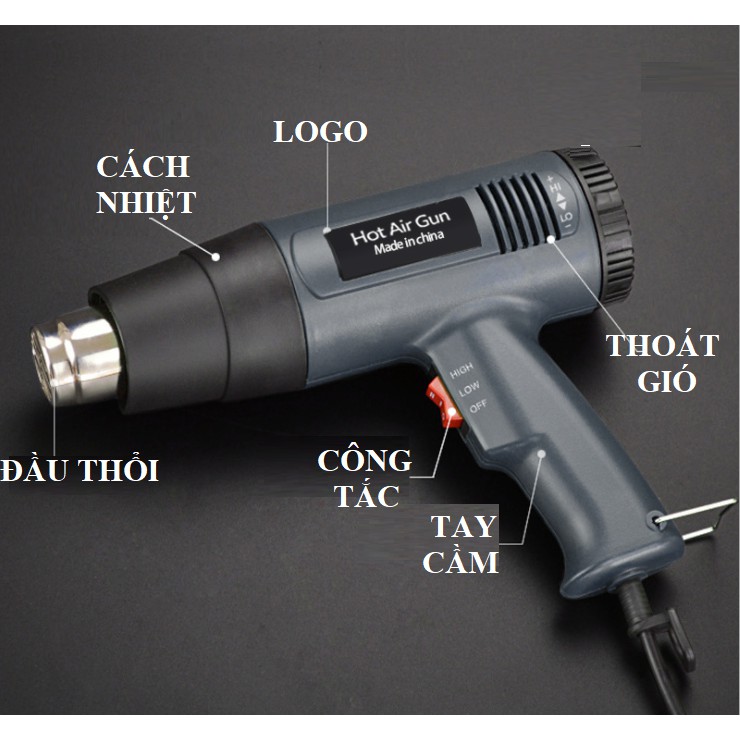 MÁY KHÒ HƠI NÓNG AIRGUN 2000W*Công dụng: