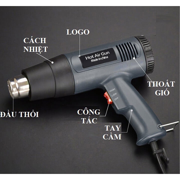 Máy khò nhiệt 2000W cầm tay, máy khò hơi nóng, thổi nhiệt hàn màng co bọc giỏ quà tết, dán decal, đóng seal điện thoạiMáy khò hơi nóng chính hãng