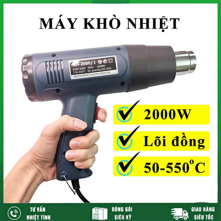 Máy khò nhiệt màng co 2000W cầm tay, máy khò hơi nóng bọc giỏ quà, dán decal, đóng seal điện thoạiMáy khò hơi nóng chính hãng