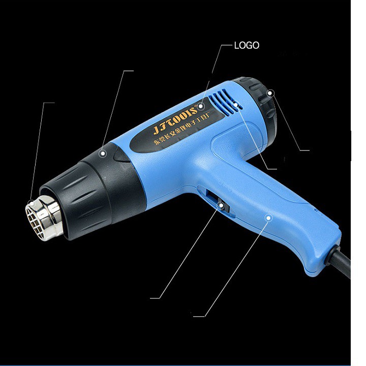 - Hơn nữa, sản phẩm này còn có công suất lên đến 2000W/220V giúp bạn dễ dàng trong việc kết dính, lột sơn, bắn keo các vật liệt nhờ hệ thống phun nhiệt hay gió một cách ổn định.