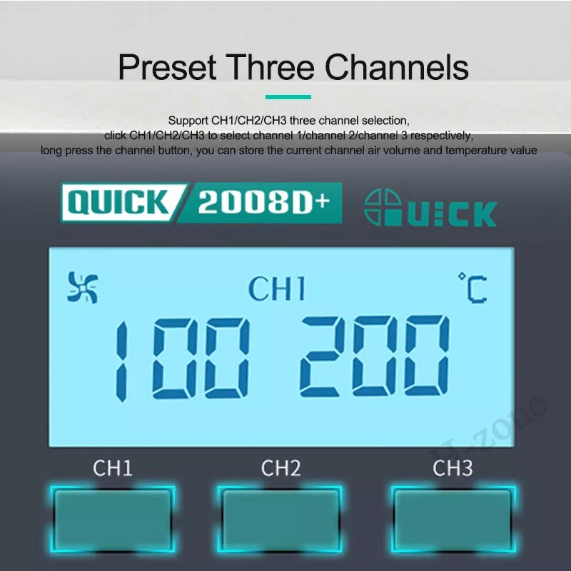 Nhẹ nhàng xoay gió, kiểm soát nhiệt độ chính xác/tự động ngủ/thông minh làm việc kênh/thông minh Màn hình hiển thị kỹ thuật số, NHANH CHÓNG 2008D + TÔI không khí nóng Desoldering ga