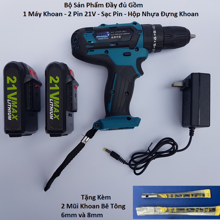 Máy Khoan 21V Không Dây 3 Chế Độ Khoan - Máy Khoan Tường, Sắt, Thép, Gỗ, Đa Năng Chính Hãng Bảo Hành 6 Tháng ( 2 Pin )👉 Khoan gỗ, khoan sắt, bắt vít