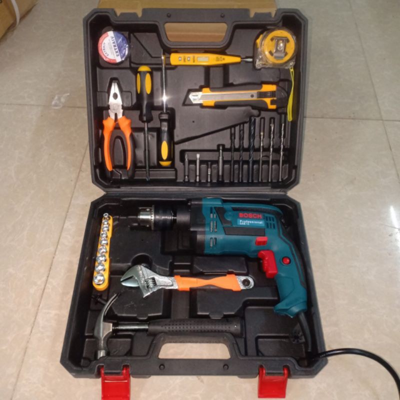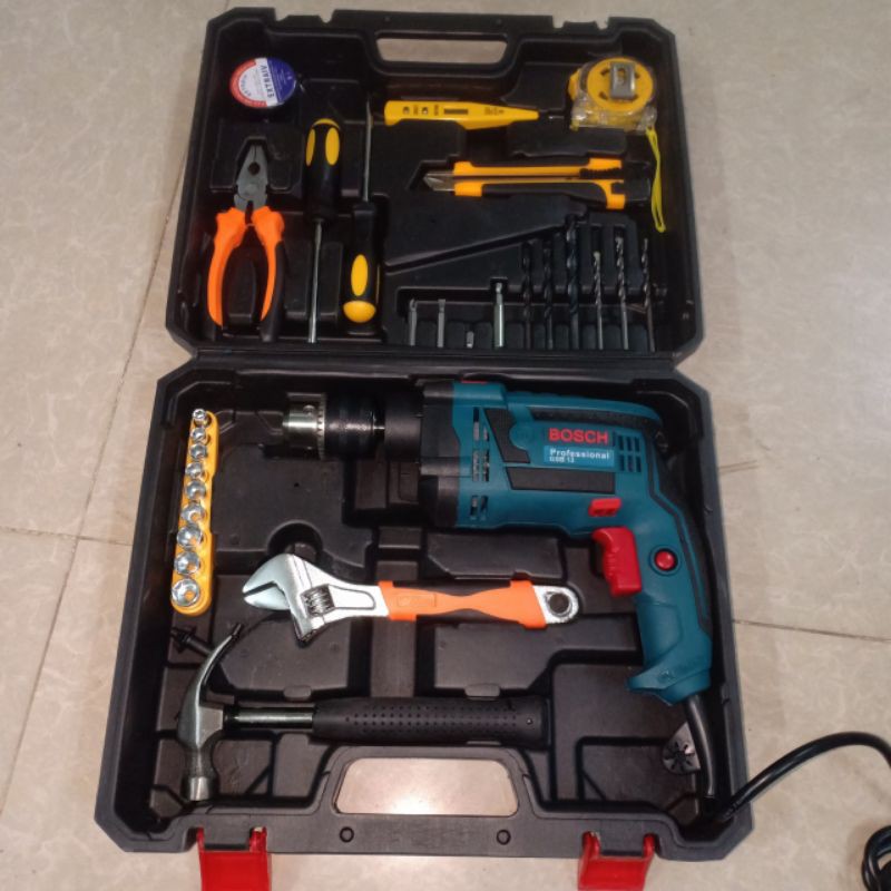 📎 Bộ sản phẩm bao gồm: Bộ vali khoan phụ kiện Boss 1200W bao gồm: búa,kiềm,mỏ lết,mũi khoan và bắt vít... chuyên dùng để khoan sắt, tường, gỗ, tôn, bắn vít