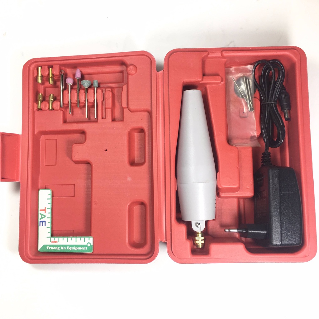 • Phụ kiện : 5 mũi khoan mini, 5 đầu kẹp mũi khoan, 4 đầu mài và 1 trục giữ, 1 adapter