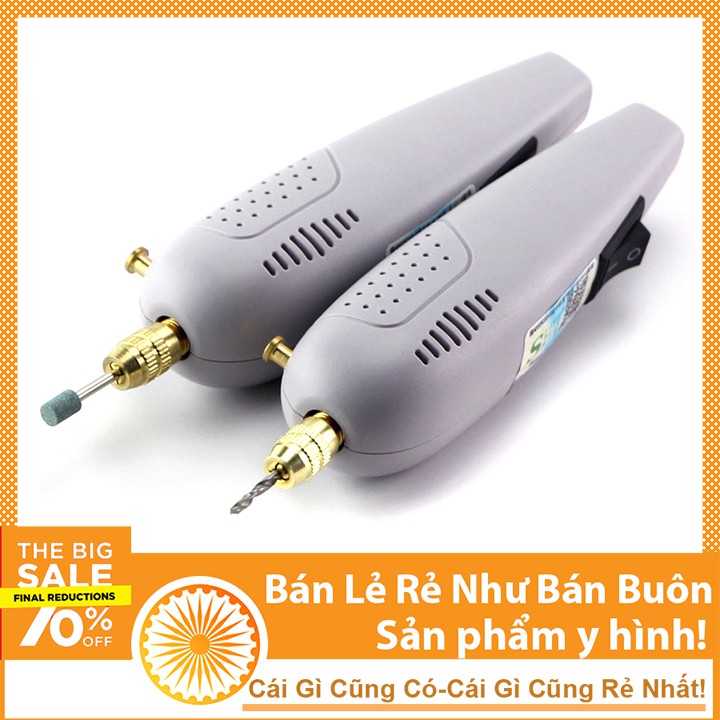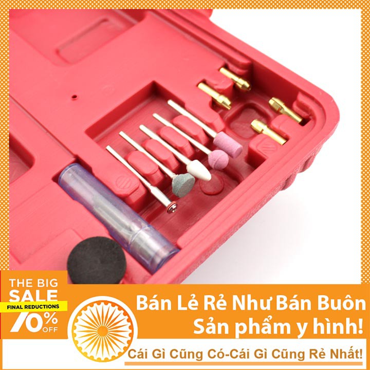 - Nguyên bộ máy khoan mini cầm tay như trong hình gồm có: 5 mũi khoan (0.5mm 1.5mm 2.0mm 2.5mm 3.0mm, 5 đầu kẹp mũi khoan, 4 mũi mài, 1 lưỡi cắt, 1 cây giữ lưỡi cắt.