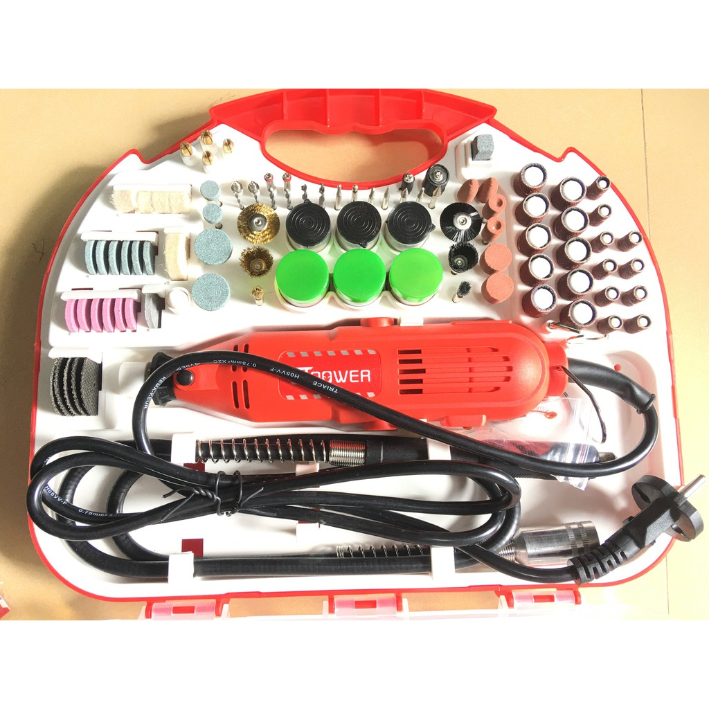 Bộ Máy Khoan Mài Cắt Khắc Mini Đa Năng 100 Chi Tiết Đỏ 180W 6 Tốc Độ Siêu Khỏe