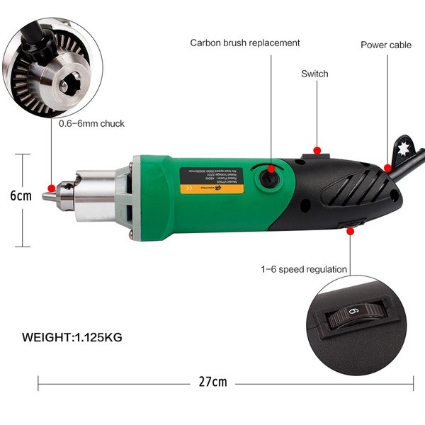 Giới thiệu Máy khoan mài điêu khắc, mài khuôn, đánh bóng trục 6.5mm đa năng công suất 480W cực mạnh