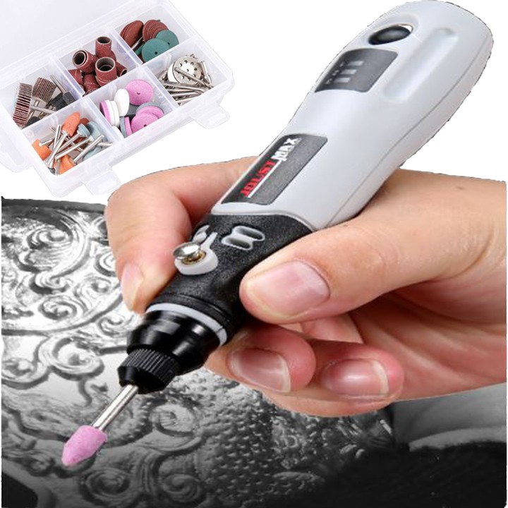tên sản phẩm : bộ máy khoan,mài,khắc,đánh bóng pin kèm 90 phụ kiệnChức năng đa năng : Khoan , Mài , Đánh Bóng , Khắc , Đục , Chạm trổ...