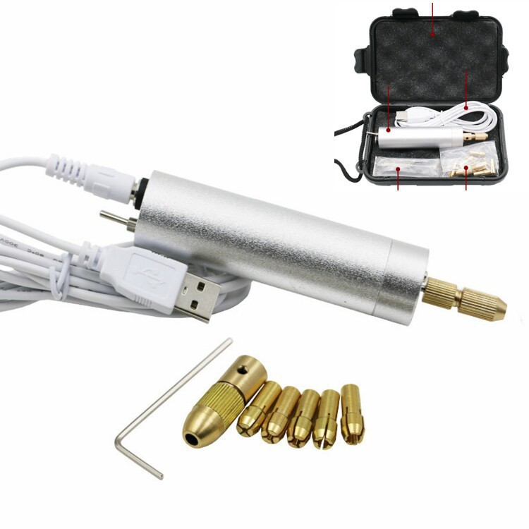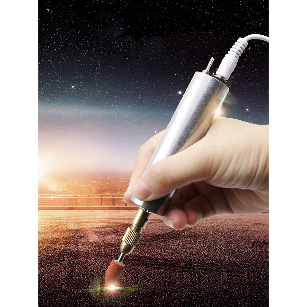 Máy khoan mài cầm tay mini đa năng dùng nguồn USB có kích thước nhỏ gọn, thích hợp với mục đích khoan, mài cắt các mạch điện tử, các vật dụng mỏng nhẹ, điêu khắc, chạm trổ, pha lê, đá, thủy tinh, mã não, ngọc bích, nhựa, đồng và nhôm và chữ bề mặt kim loại mềm khác.Thông số kỹ thuật: