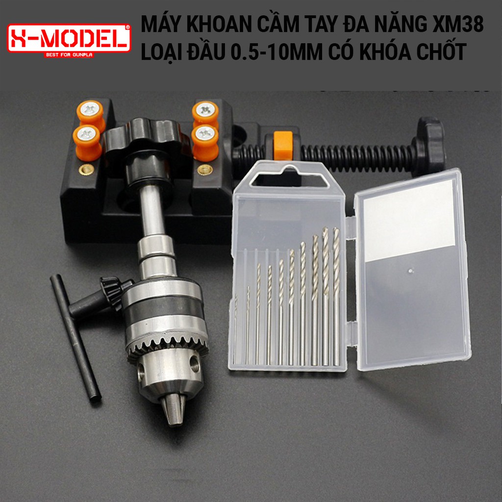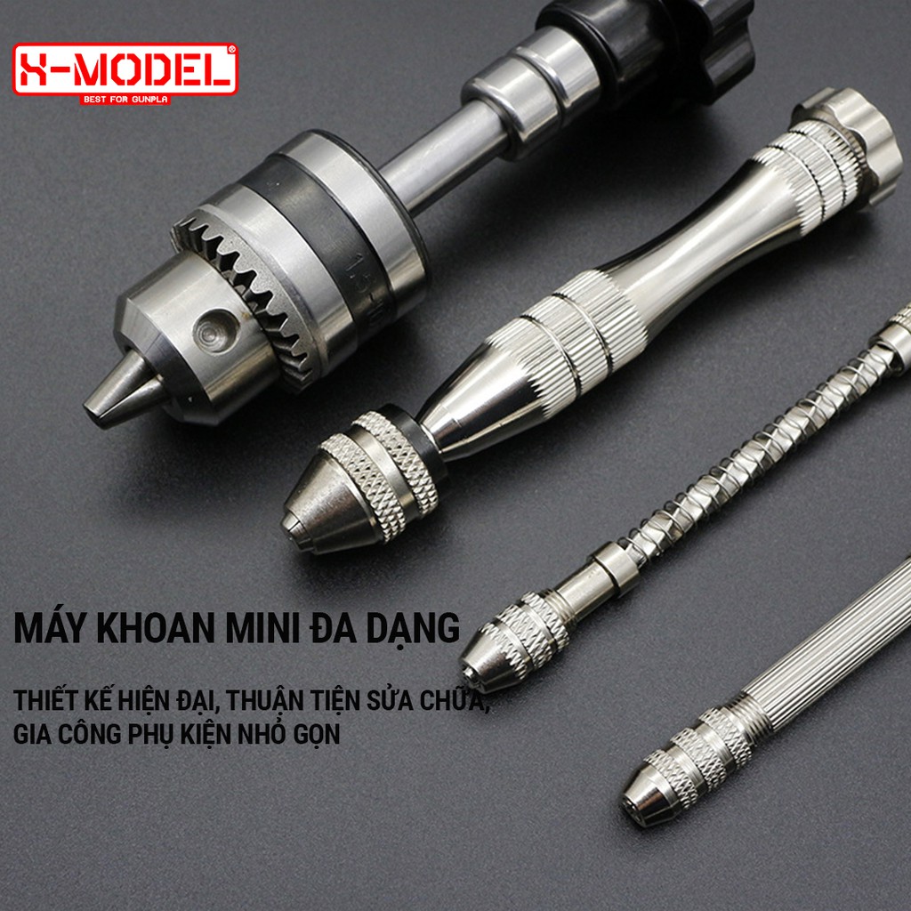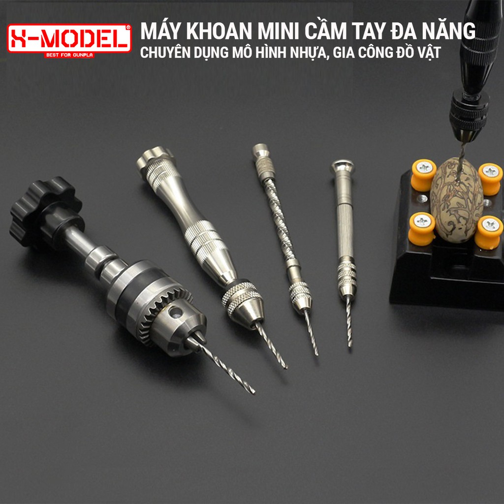 Máy khoan mini cầm tay đa năng đầu 0.5, 6.5, 10mm, có khóa tay, phụ kiện gia công mô hình nhựa XMODEL