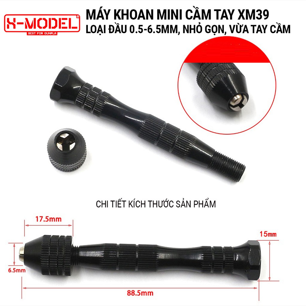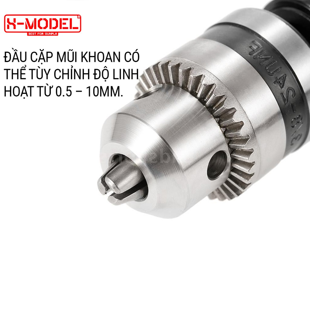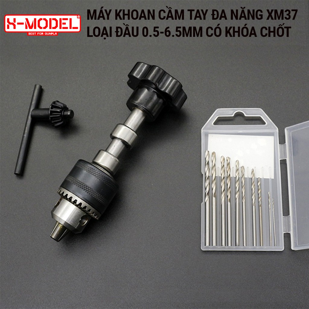 Máy khoan mini cầm tay đa năng đầu 0.5, 6.5, 10mm, có khóa tay, phụ kiện gia công mô hình nhựa XMODEL