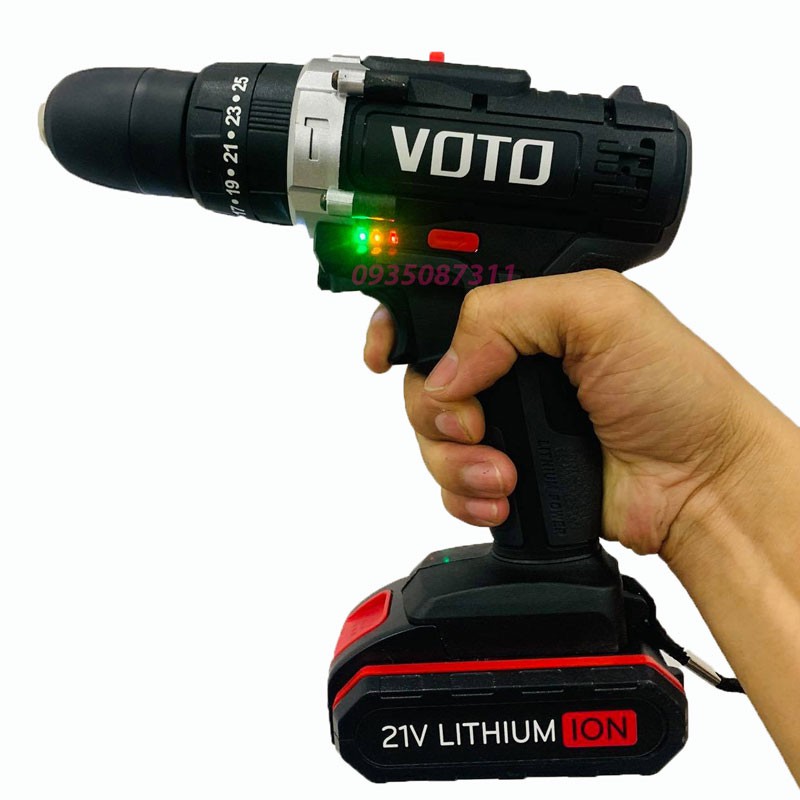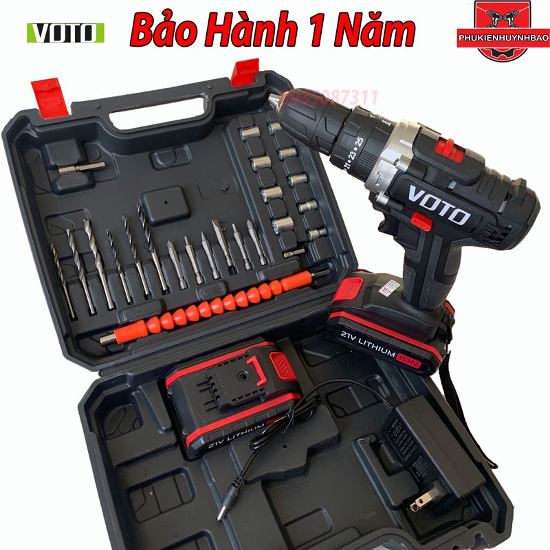 Máy Khoan Pin 21v VOTO 3 Chế Độ Có Búa,Kèm Bộ Phụ Kiện,Hộp Nhựa,Bảo Hành 1 Năm.