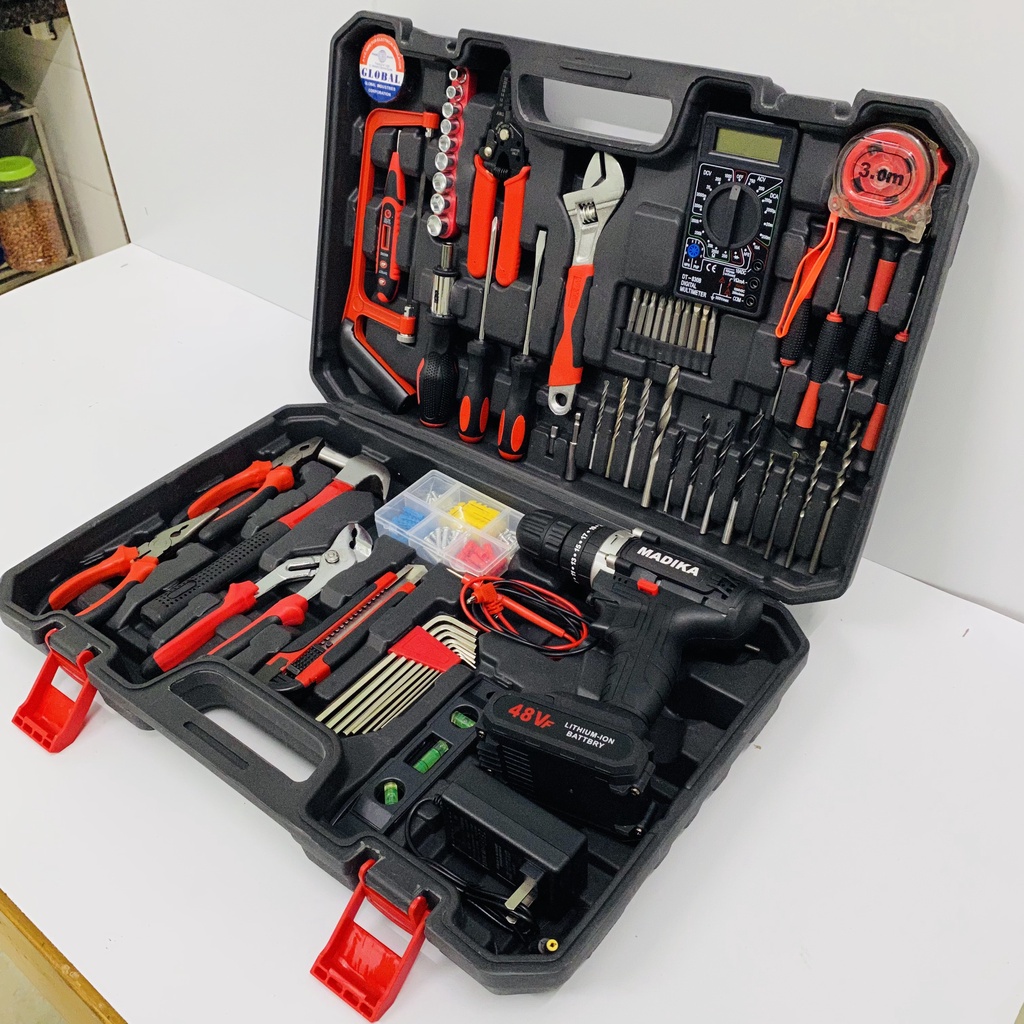Nhà cửa & Đời sống > Dụng cụ & Thiết bị tiện ích > Dụng cụ > Hộp dụng cụ cầm tay || Máy Khoan Pin MADIKA 48V 3 Chức Năng Kèm Hộp Đồ Nghề Sửa Chữa Đa NăngCòn hàng