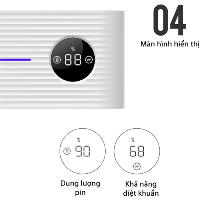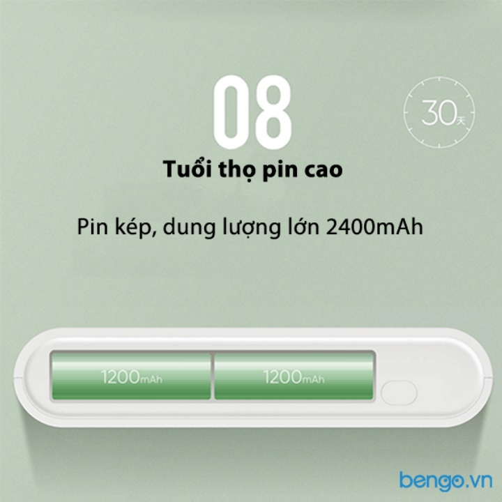 - Máy khử khuẩn bàn chải xiaomi sử dụng pin lithium có dung lượng: 2400mAh, Có thể sử dụng 30-60 ngày sau khi sạc