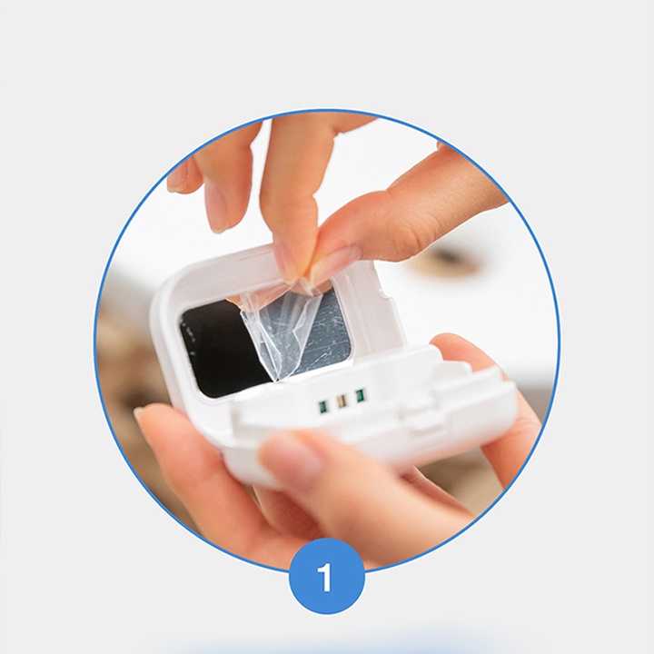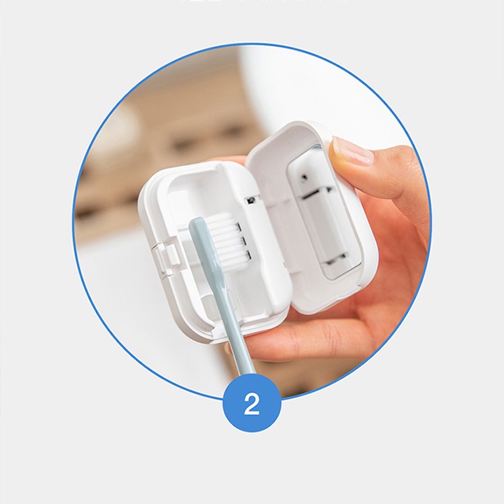 2. Sau khi đánh răng, đặt đầu bàn chải đánh răng khô vào giữa máy tiệt trùng.