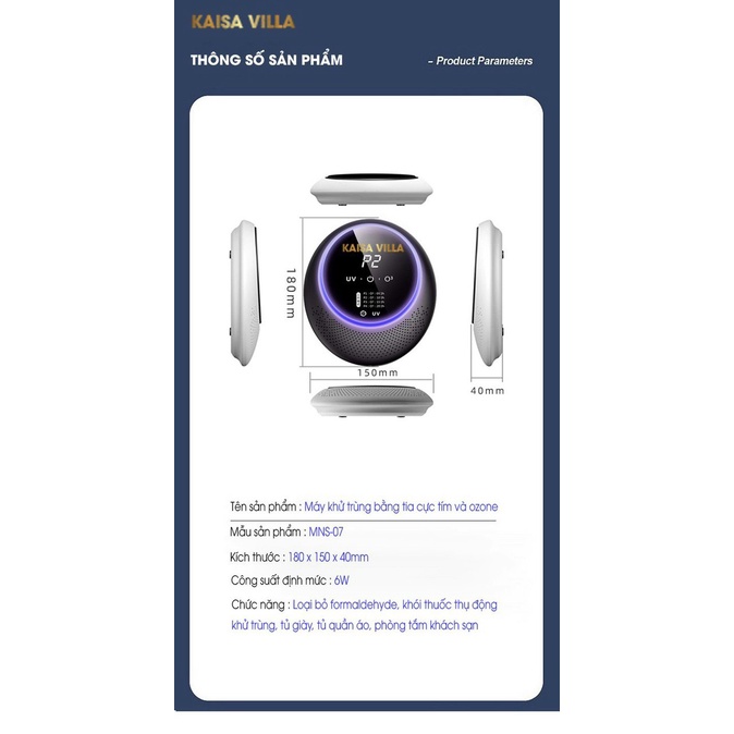 MÁY KHỬ KHUẨN CAO CẤP LỌC KHÔNG KHÍ BẰNG TIA UV KAISA VILLA KVS-07- Tên hàng hóa: MÁY KHỬ KHUẨN CAO CẤP LỌC KHÔNG KHÍ BẰNG TIA UV KAISA VILLA KVS-07