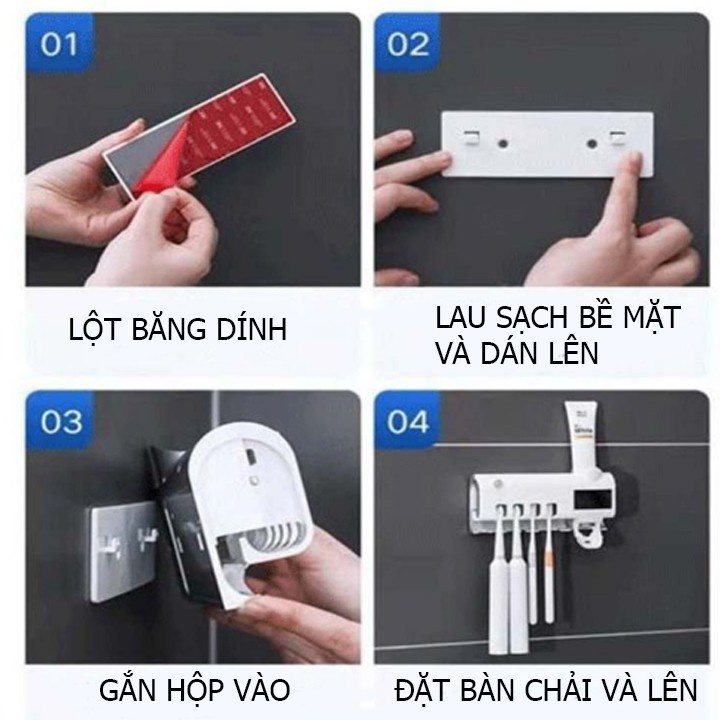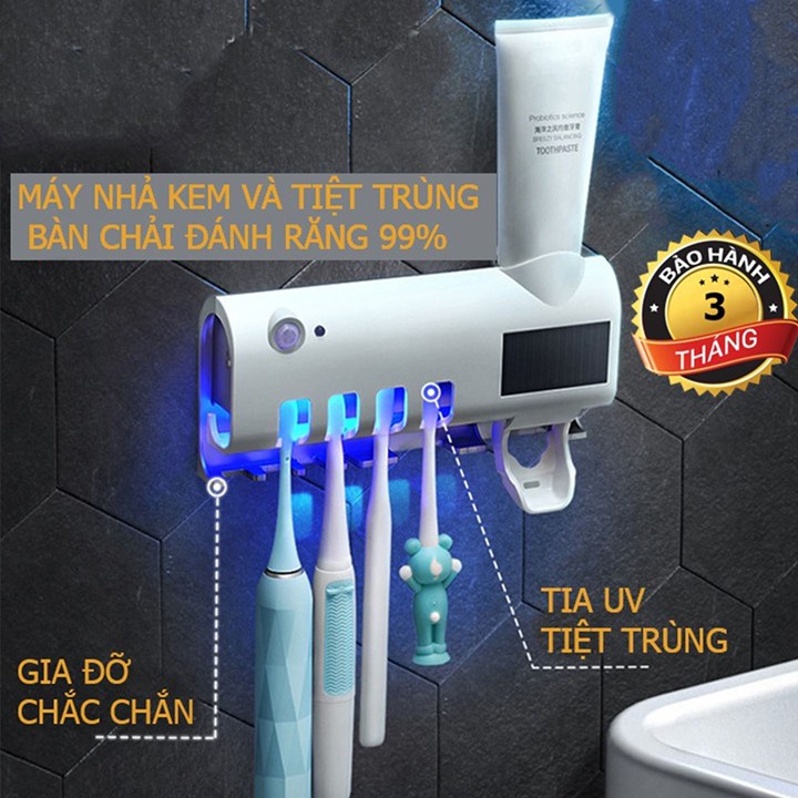 Máy khử khuẩn tiệt trùng bàn chải bằng tia UV, kiêm kệ nhả kem đánh răng - Giá để bàn chải khử trùng sạch 99% vi khuẩn