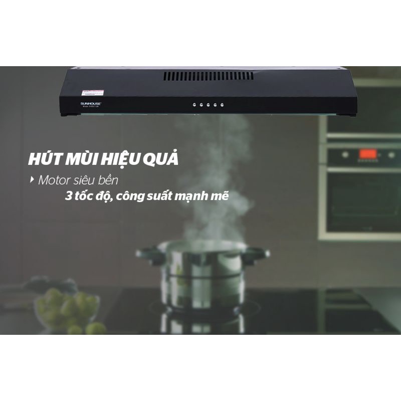Máy hút mùi SUNHOUSE SHB6118B có công suất lớn tới 750m³ /h, 3 tốc độ hút cho hiệu quả hút mùi tốt ưu lại tiết kiệm điện năng. Mùi dầu mỡ hay các mùi khó chịu khác trong quá trình nấu nướng sẽ nhanh chóng bị hút sạch, không gây ám mùi lên quần áo, các vật dụng nhà bếp hay các không gian liền kề khác (điển hình như thiết kế căn hộ chung cư).