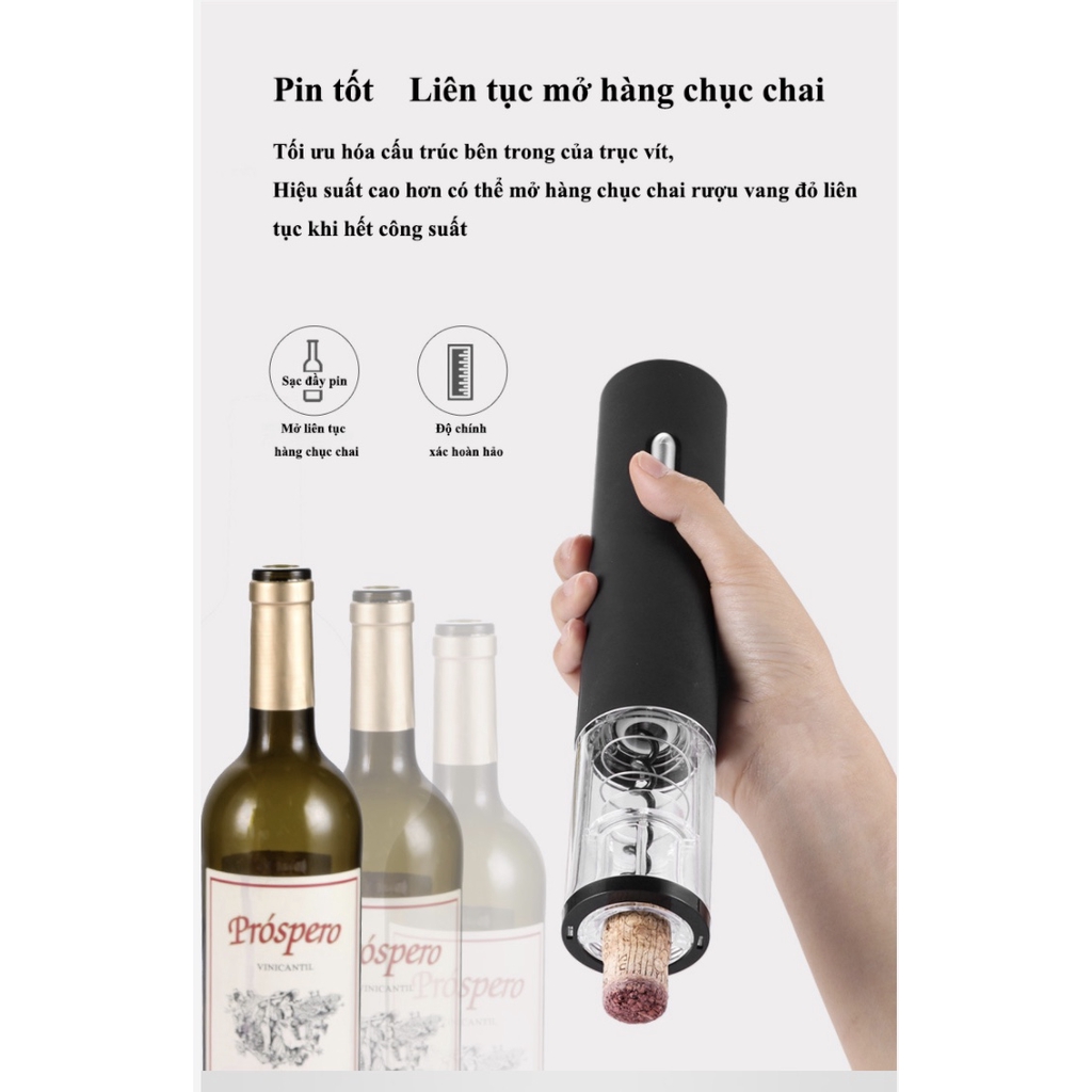 Giới thiệu Máy Khui rượu vang khui champagne chuyên nghiệp Copper Cores pin sạc Lithium (Black)
