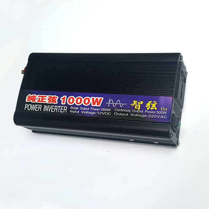 BỘ KÍCH ĐIỆN INVERTER 12V - 220V - 1000W SIN CHUẨN - CÔNG SUẤT THỰC 750W - KẸP CÁ SẤU + TẨU DÙNG Ô TÔ