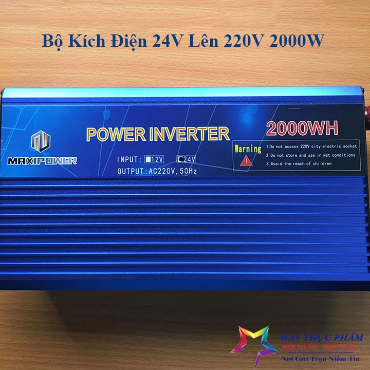BỘ KÍCH ĐIỆN 24V - 220V - 2000W CHÍNH HÃNG MAXIPOWER- Máy Thực Phẩm xin giới thiệu sản phẩm Bộ kích điện 24V - 220V - 2000W MAXIPOWER chức năng dùng đổi nguồn từ bình ắc quy 24V sang 220V sử dụng cho các thiết bị điện trong gia đình.