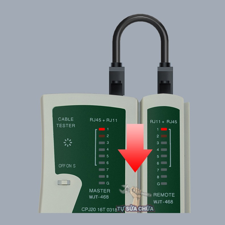 Nếu là cáp thẳng đèn trên cả main và Remote tester sẽ sáng cùng màu (theo kiểu 1-1,2-2,3-3,4-4,5-5,6-6,7-7,8-8)